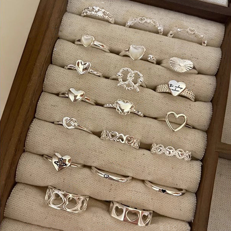 Women's Simple Love Heart-shaped Opening Adjustable Design High-grade Light Rings