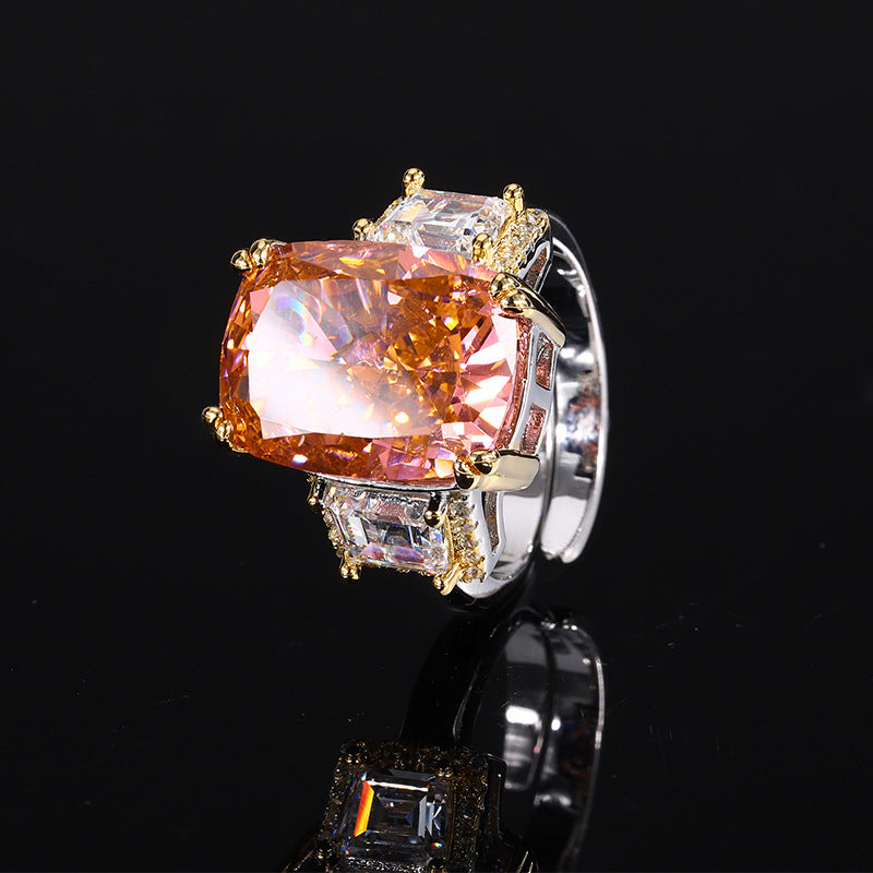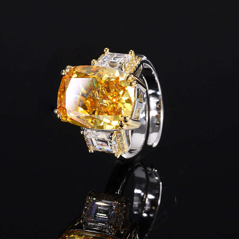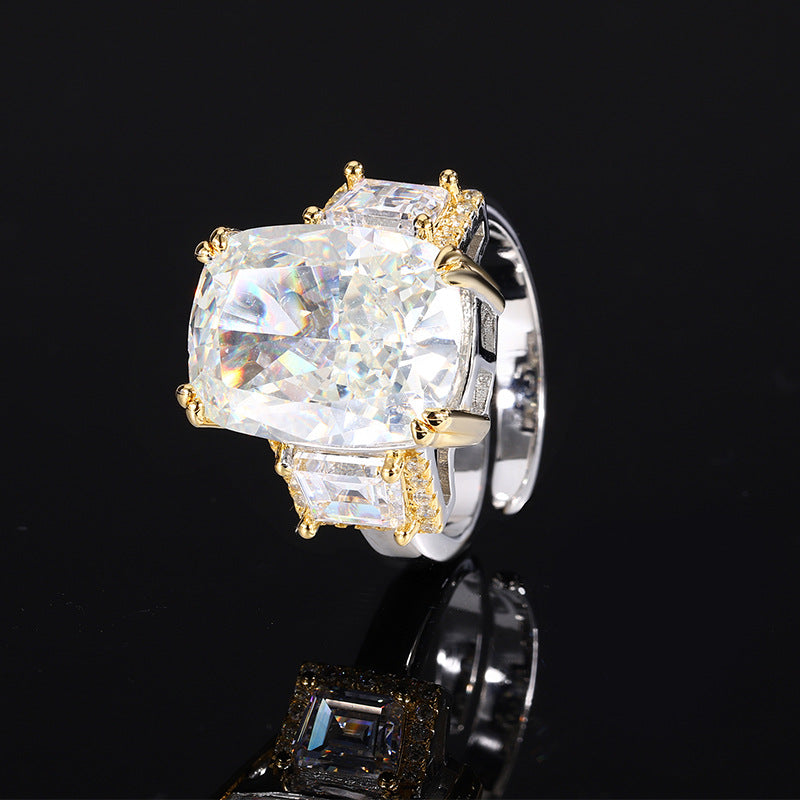 Women's Sole Gold-plated High Carbon Diamond Ice Flower Square Inlaid Rings