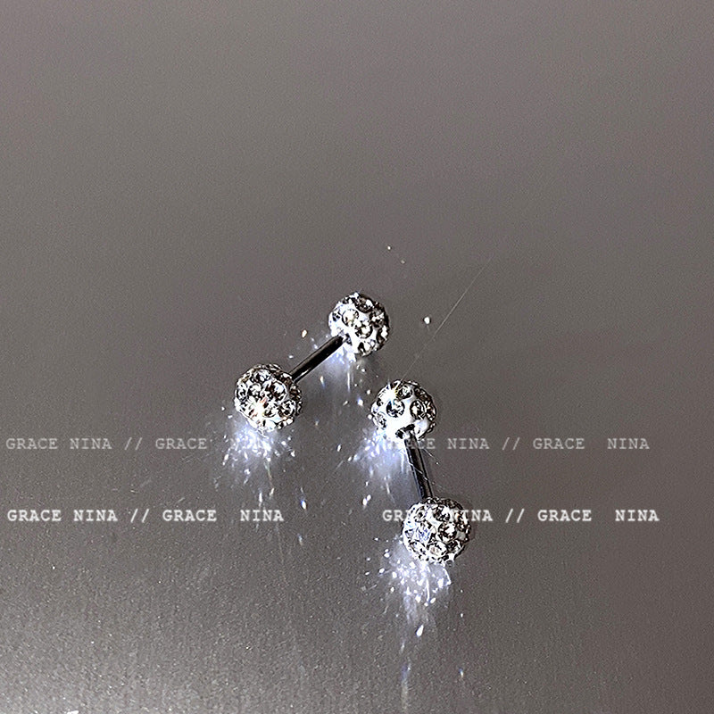 Women's Spiral Small Exquisite Shining Diamond Ball Ear Bone Pin Earrings