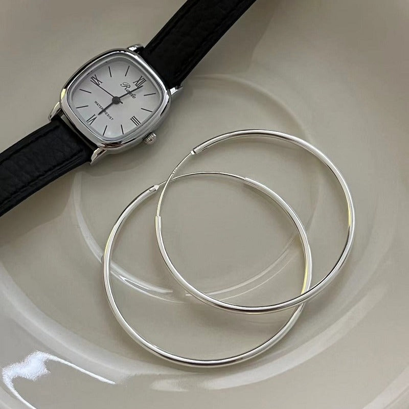 Women's Sterling Sier Bold Big Circle Simple Earrings