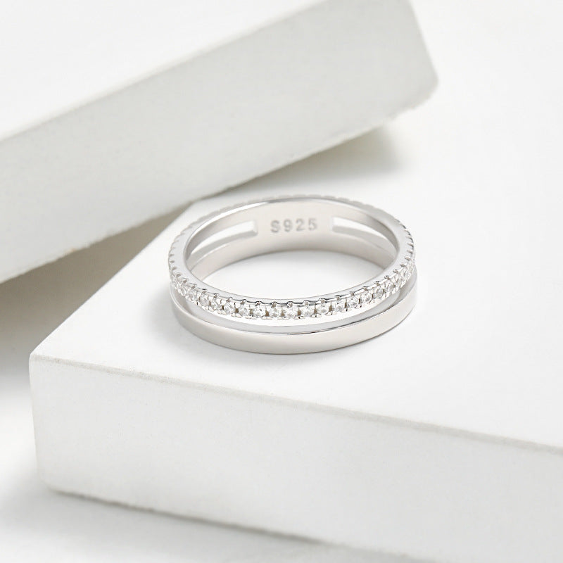 Women's Sterling Sier Gang Drill Zircon Simple Rings
