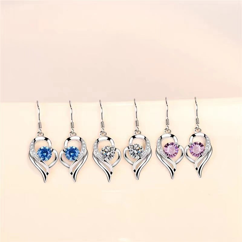 Women's Sterling Sier Long Elegant Heart Trendy Earrings