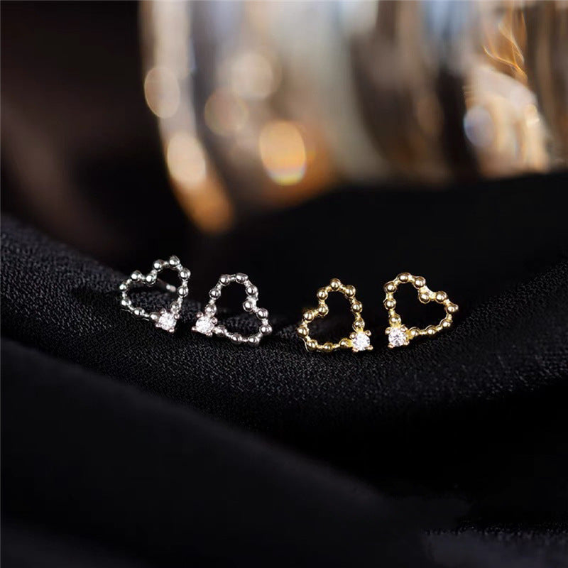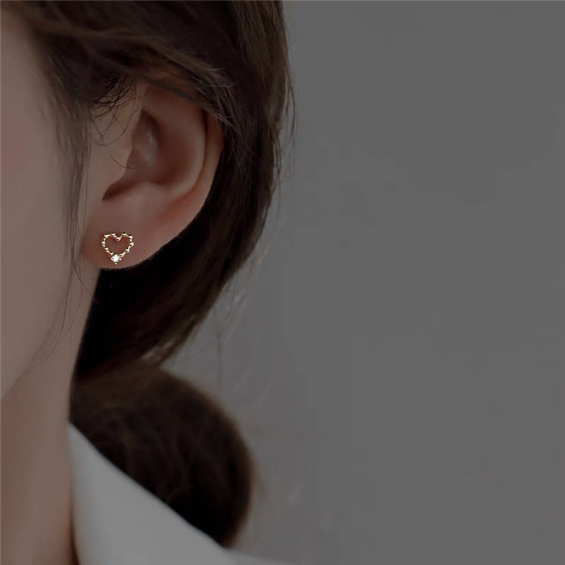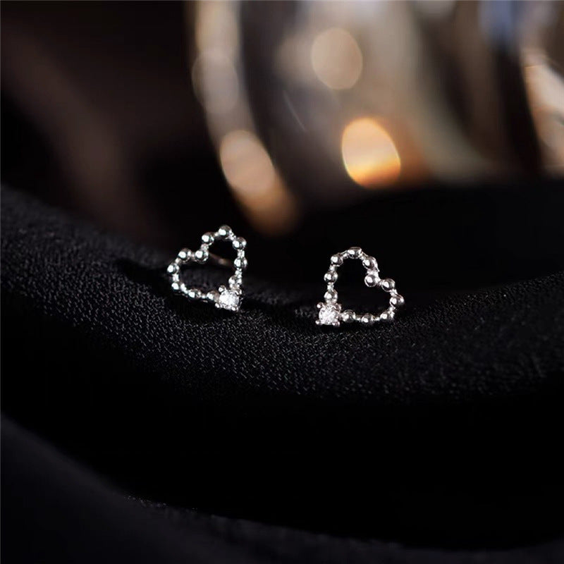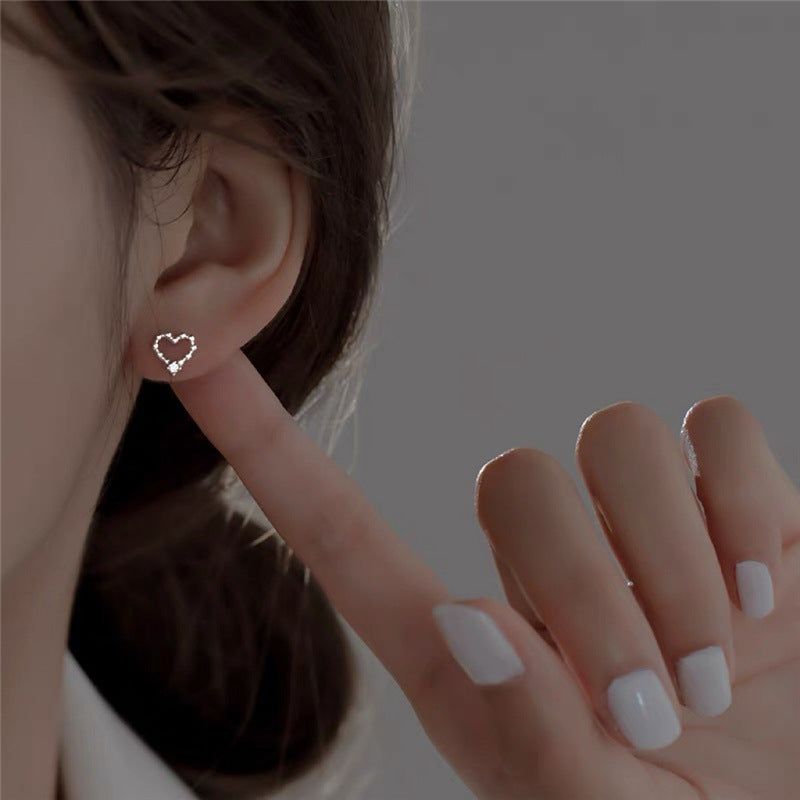 Women's Sterling Sier Needle Diamond Heart-shaped Small Earrings