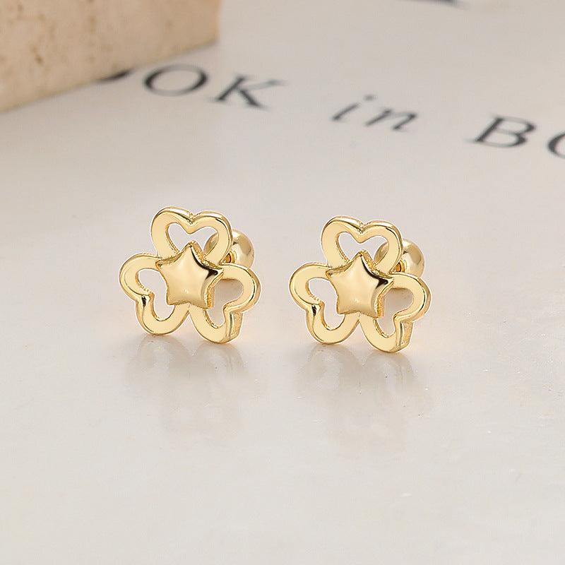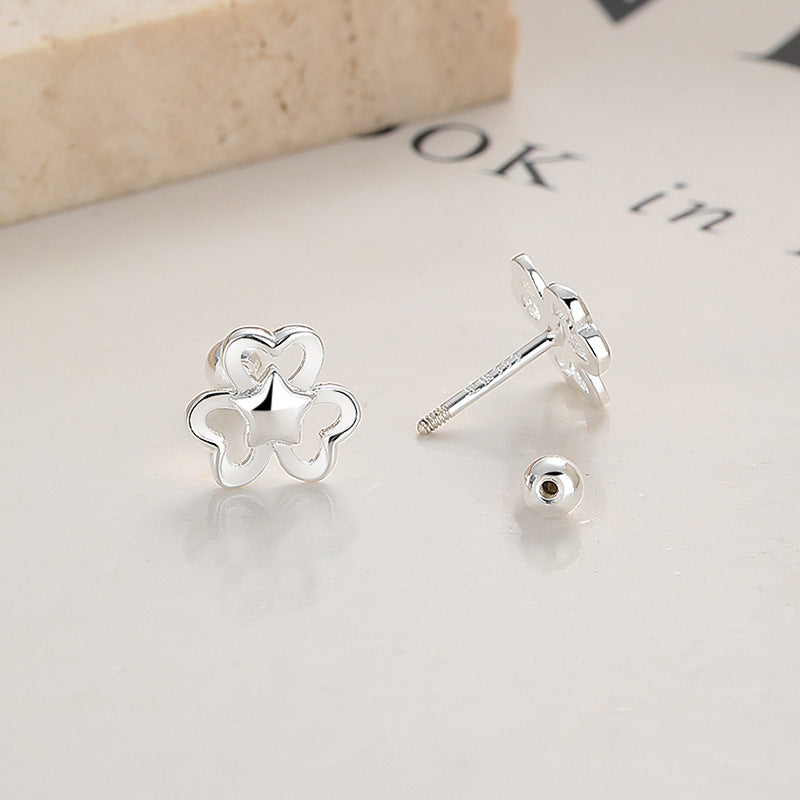 Women's Sterling Sier Star Flower Thread For Sweet Fashion Ear Earrings