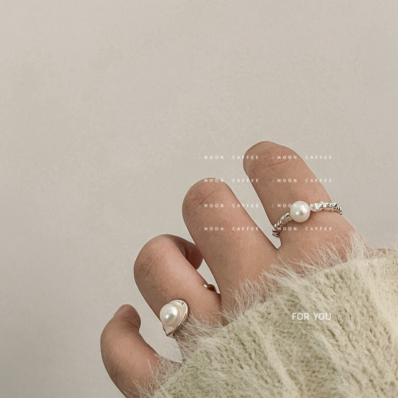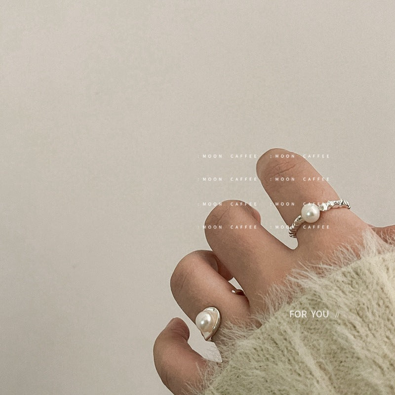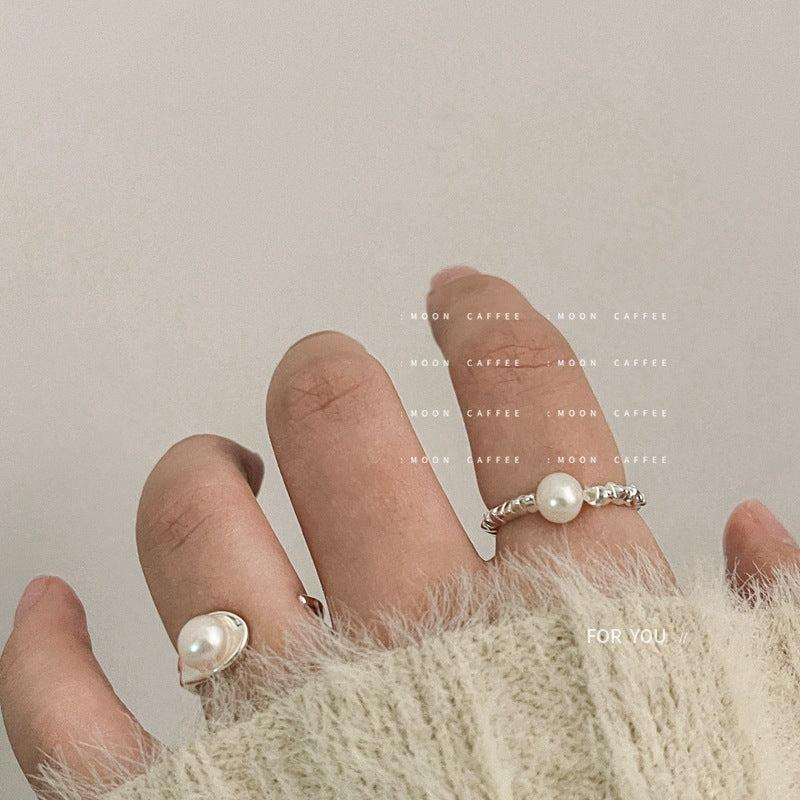 Women's String Small Pieces Of Sier Beaded Freshwater Pearl Adjustable Rings