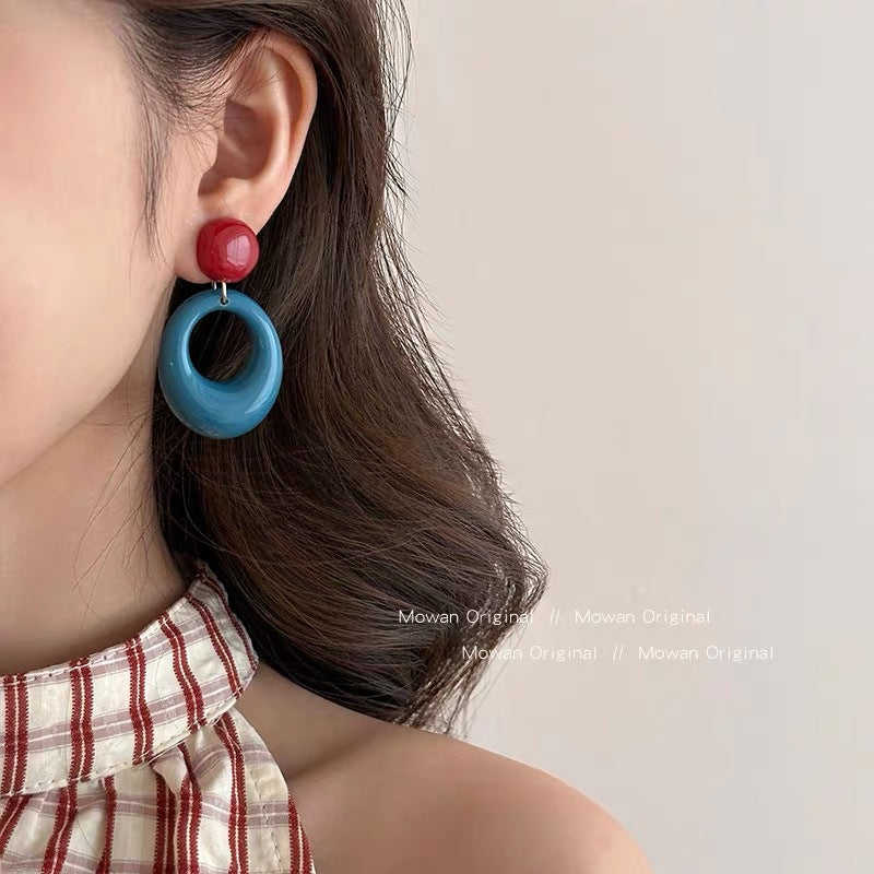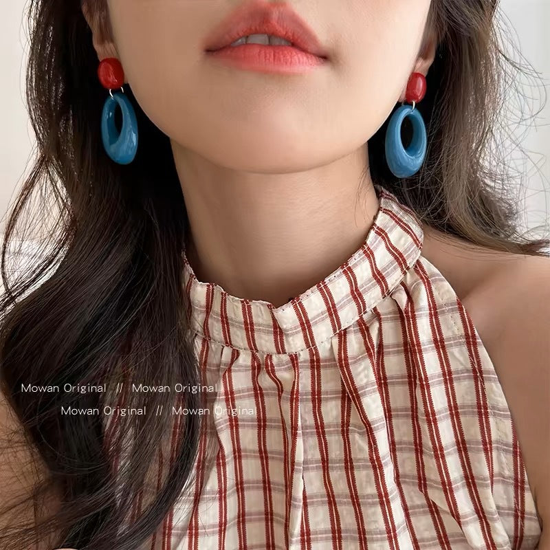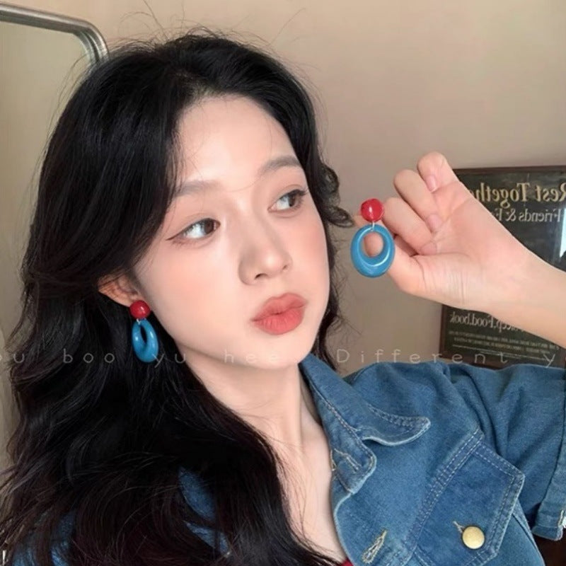 Women's Style Atmosphere Circle Contrast Vacation Blue Ear Earrings