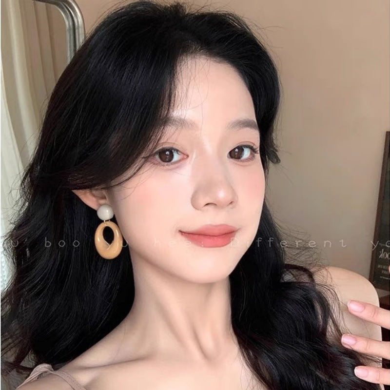 Color: Blue round Ring Earrings, Milk Tea round Ring Earrings