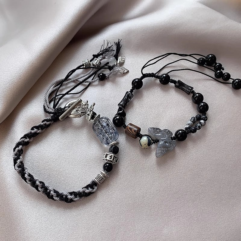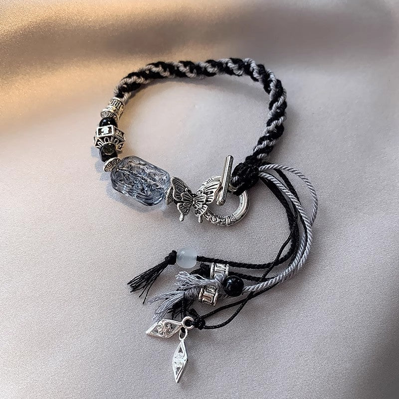 Women's Style Black Butterfly Tassel Woven Chinese Bracelets
