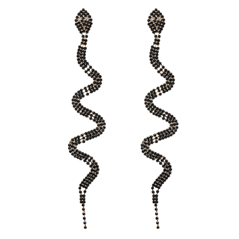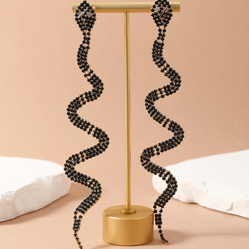 Women's Style Design Exaggerated Long Black Crystal Rings