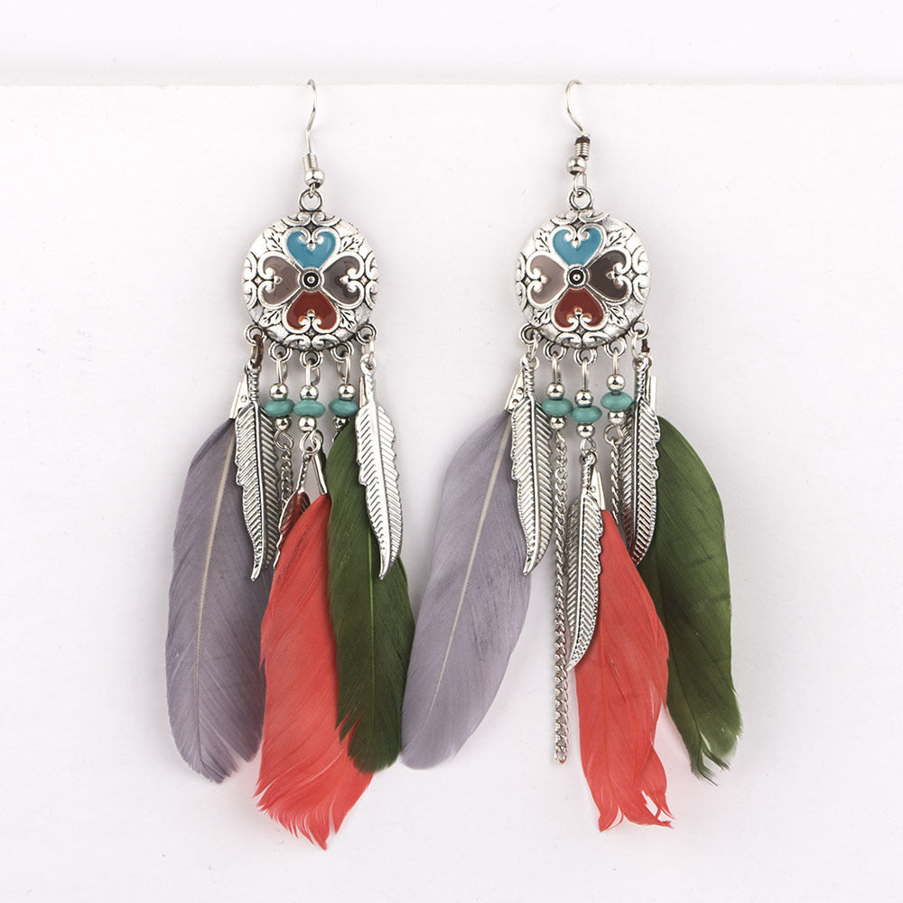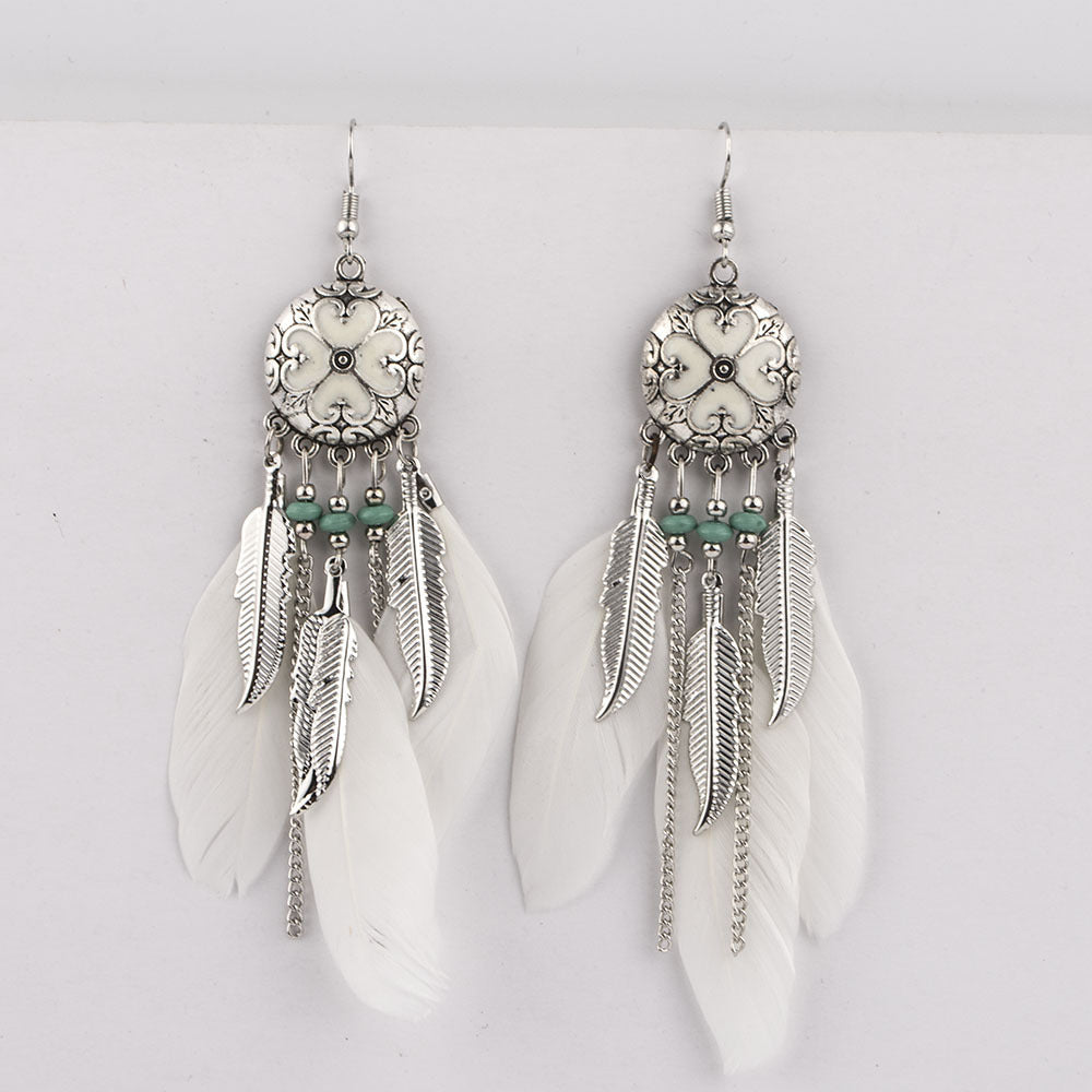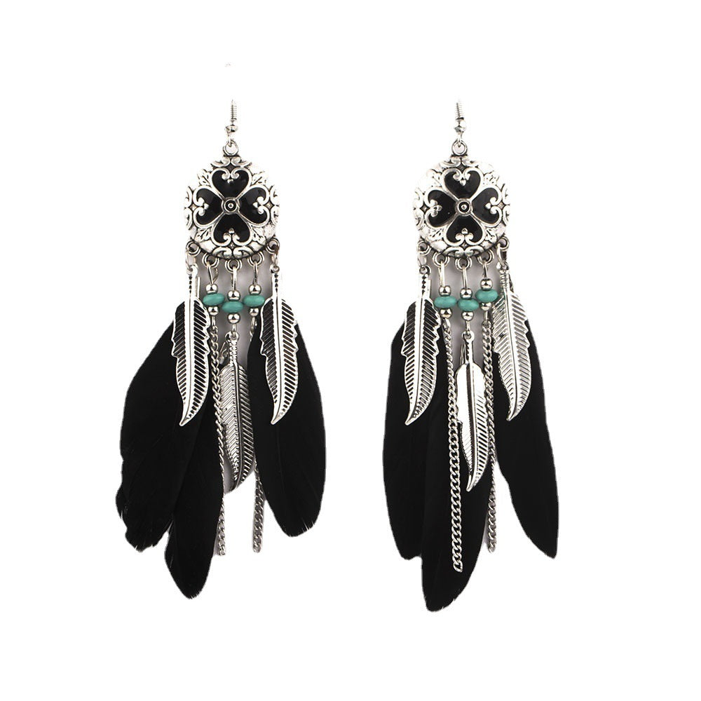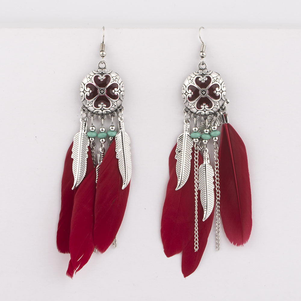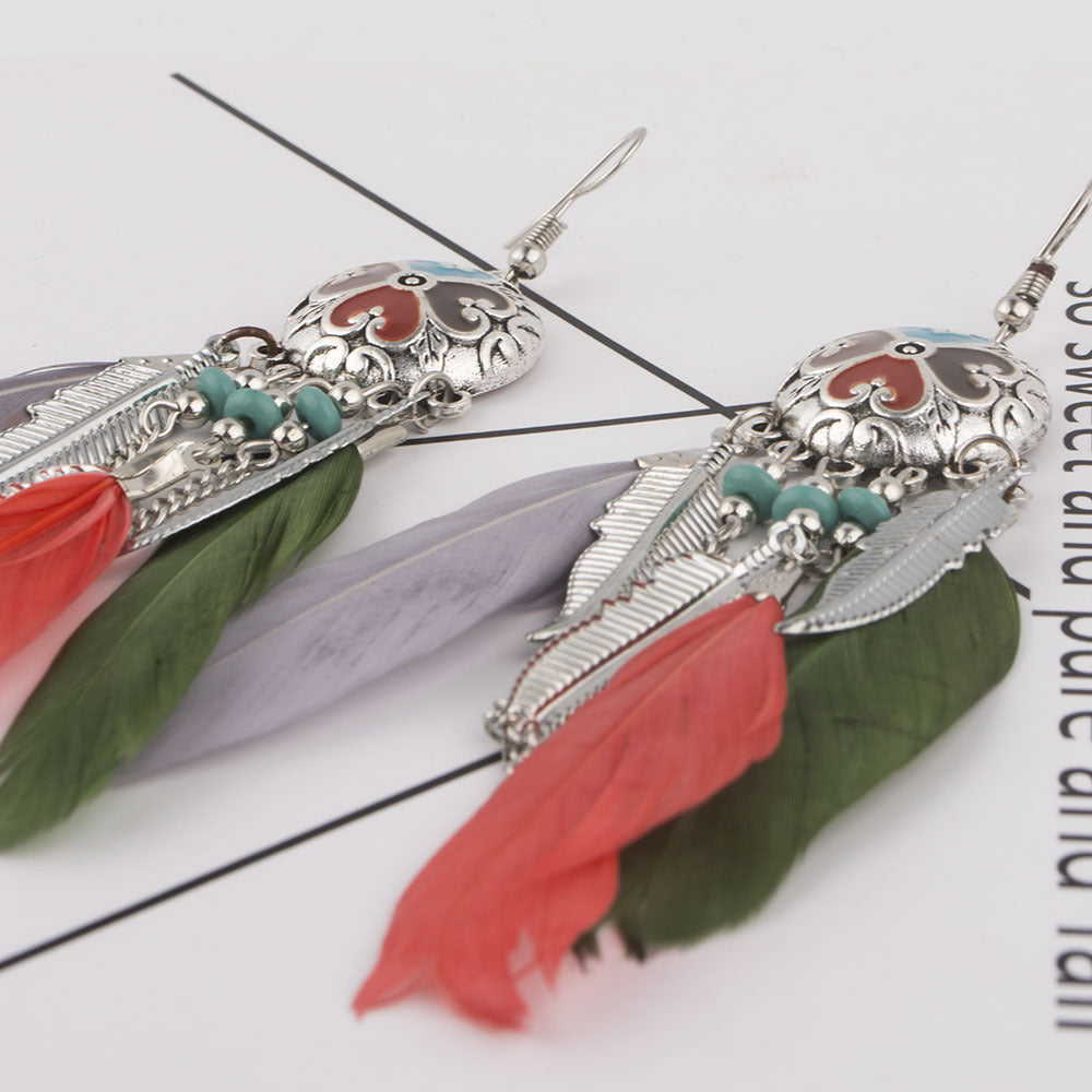Women's Style Ornament Drop Oil Feather Tassel Long Elegant Earrings