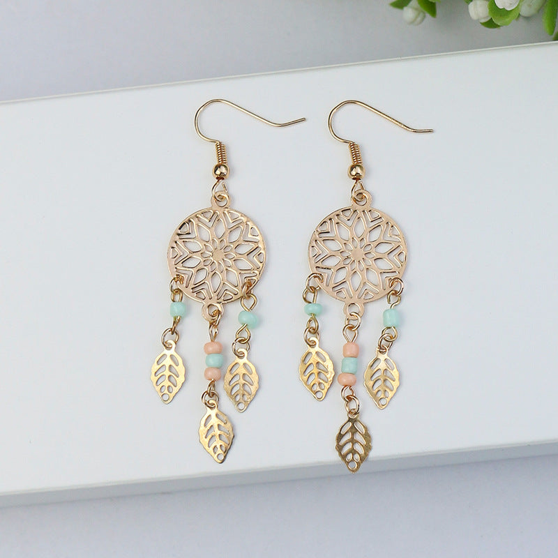 Women's Suit Dripping Geometric Bead Leaves Flower Earrings