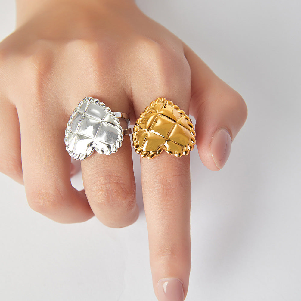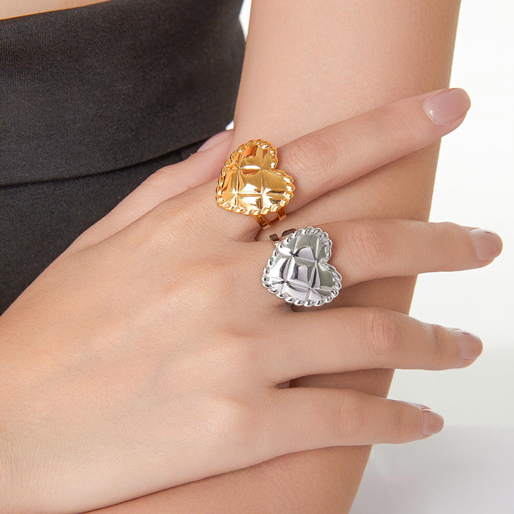 Women's Trendy Rhombus Love Heart-shaped Open Style Personalized Rings