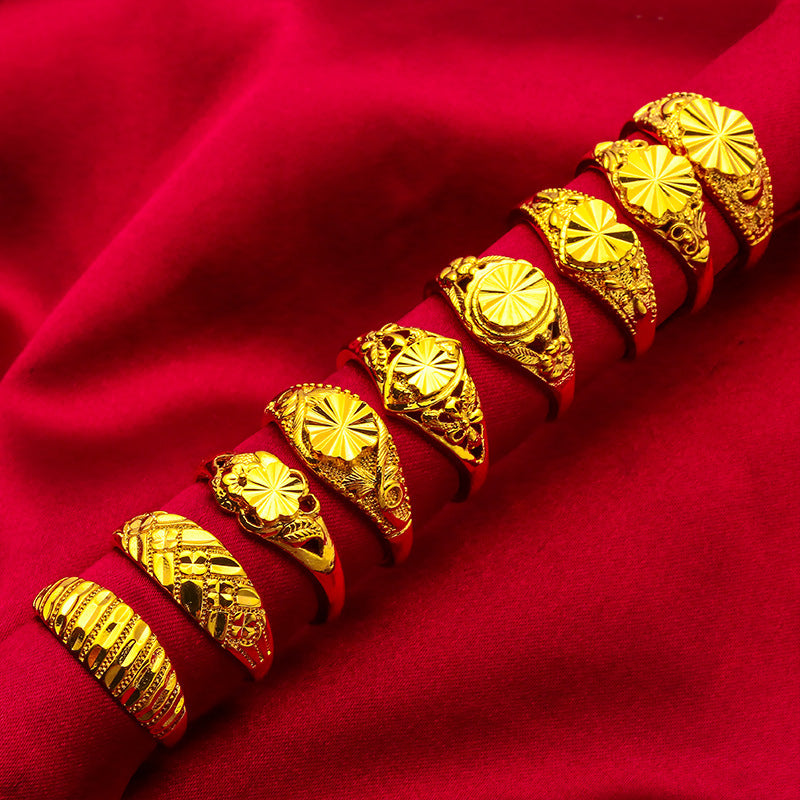 Women's Vietnam Placer Gold Pattern Carven Design Rings