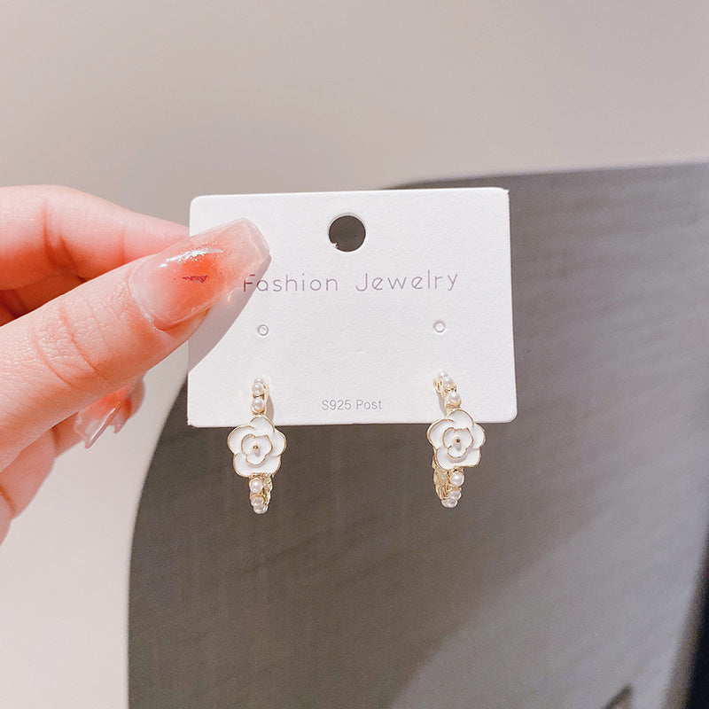 Women's Vintage Pearl Drop Oil Camellia For Graceful Earrings
