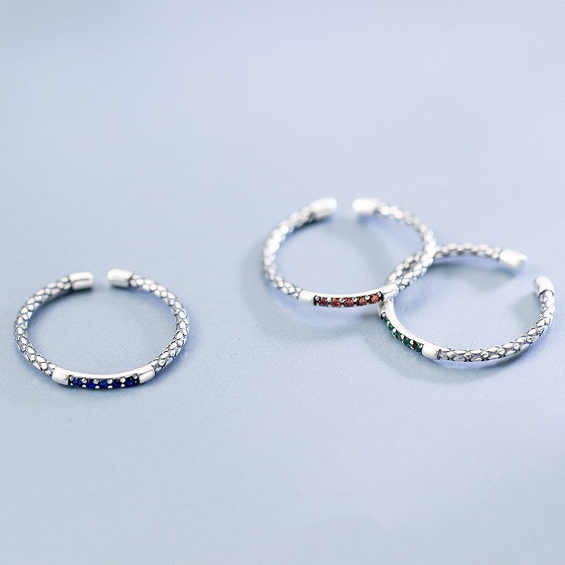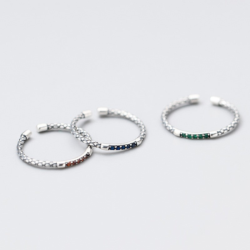 Women's Vintage Thai Sier Stylish Opening Adjustable Snake Pattern Inlaid Rings