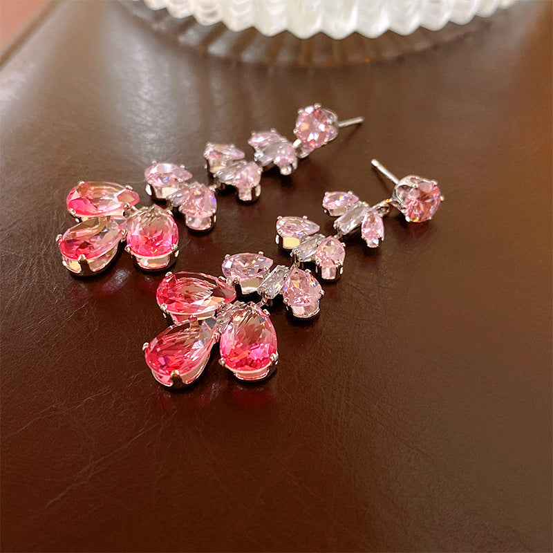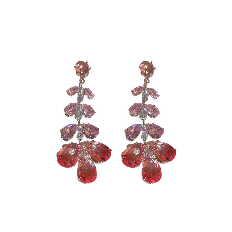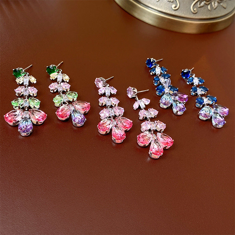 Zircon Leaf Tassel Female High Profile Fashion Light Earrings